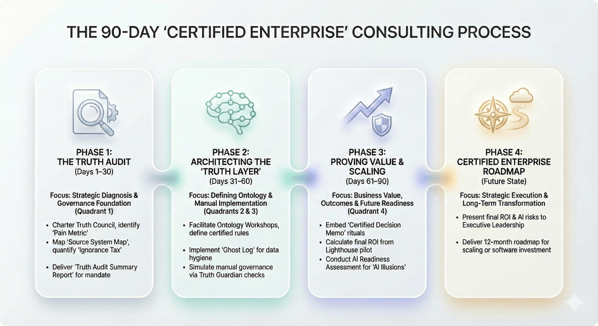 This infographic presents a clear, phased approach for organizations to move from data anarchy to a "Certified Enterprise," building a foundation of trusted data to drive strategic value.